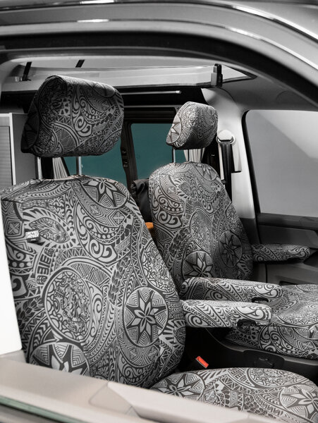 Die DriveDressy Sitzbezüge sorgen für mehr Individualität und v.a. Schutz im Van. Sie sind besonders strapazierfähig, wasserabweisend und waschbar. Dabei überzeugen sie mit einer gemütlichen Polsterung, atmungsaktivem Material und dem Erhalt sämtlicher Sitzfunktionen wie Airbags oder ISOfix.Hinweis: Die Sitzbezüge sind ausschließlich passgenau für für die serienmäßig verbauten Standardsitze aus dem jeweiligen ausgewählten Fahrzeugmodell.Schutz der Sitze im Alltag, beim Camping, der Arbeit...Das 3-lagige Material ist bei 30°C waschbar, reißfest, strapazierfähig, leicht wasserabweisend, flaumhemmend und atmungsaktiv.Obere Schicht: nachhaltige, robuste Kunstfaser aus Bottle-WasteMittlere Schicht: 3mm Schaumstoffpolster für extra KomfortUntere Schicht: netzartige Schutzschicht für mehr RutschfestigkeitOb Stellräder, ISOFix oder Airbag - Funktionen der Sitze und benötigte Aussparungen werden beachtet.Die Schonbezüge werden einfach befestigt - mit Klettverschlüssen, Haken oder ganz ohne Hilfsmittel.In 3 Designs verfügbar: Grau (M94379), Hawaii Dream (M94380), Magic Forest (M94381)