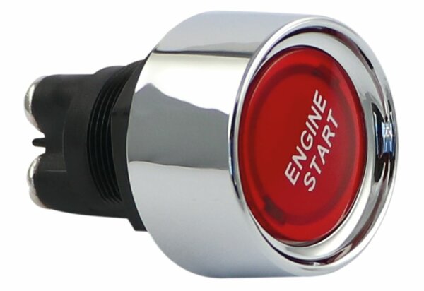 Schalterform: Druckschalter Funktion mechanisch: tastend Funktion elektrisch: Schliesser Spannung: 12 Volt Belastbarkeit: 50 Ampère Einbauloch: rund Breite / Tiefe: 34 x 46 mm Höhe: 16.5 mm Durchmesser: M22x1.0 mm Beleuchtung: Ja Wasserdicht: Nein Zusatzinformation: KFZ-Drucktaster ENGINE START zum Starten von Maschinen, Autos, Hybrid- & Elektrofahrzeuge etc., chrom/rot, M22, rot leuchtend, 12VDC 50A, 3 Anschlüsse, für Paneldicke max. 9.0mm 0 <- 1 / ø M22x1.0