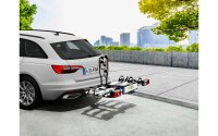 Für 3 Fahrräder mit Schnellverschluss und Abklappmechanismus. Der Träger ist in nur 3 Schritten einsatzbereit (faltbar) Nutzlast: 60kg (für Elektrofahrräder geeignet) Eigengewicht: ca. 21kg Befestigung der Fahrräder durch abnehm- und abschließbare Strap-Rahmenhaltern mit Ratsche speziell für empfindliche, Overseize und Y-Rahmen Radstand: max. 135cm Max. Reifenbreite in der Schiene bis 3,25 Zoll, Schienenabstand ca. 23cm erweiterbar auf 4 Fahrräder.