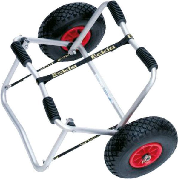 Das Boot liegt schonend auf weichen Gummiauflagen. Der Rahmen besteht aus stabilem nichtrostenden eloxiertem Aluminium. Die grossen und breiten Räder verhindern ein Einsinken im Sand. Die luftbereiften Räder lassen sich mittels Klappsplinten leicht abnehmen und sorgen für einen ruhigen Lauf.