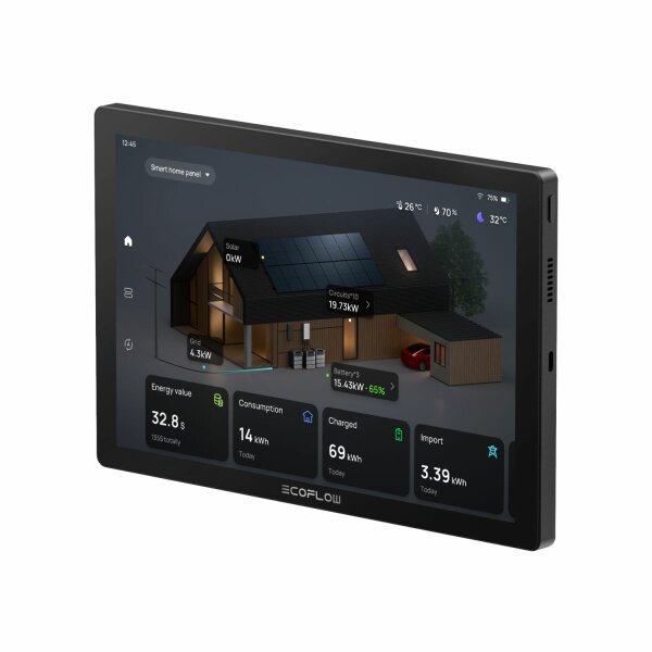 Le panneau de contrôle EcoFlow PowerInsight se compose d’un écran robuste de 10 pouces (diagonale d’affichage de 254 mm) avec une résolution de 1’280 x 800 pixels. L’écran est compatible avec le Multi-Touch de 10 points et dispose d’une batterie Li-Ion intégrée d’une capacité de 3’000 mAh. Description: EcoFlow PowerInsight optimise la consommation d’énergie de votre maison et réduit les coûts énergétiques grâce à l’utilisation intelligente de l’énergie des batteries et de l’énergie solaire ainsi que de l’alimentation du réseau. Les statistiques énergétiques sont présentées de manière claire, ce qui vous permet de contrôler en temps réel les données énergétiques de votre maison chaque jour, chaque mois et chaque année. Vous aimeriez connaître l’efficacité écologique de votre maison? Vous trouverez ici toutes les réponses à vos questions! Optimisation de la consommation d’énergie: Découvrez des possibilités d’économies intelligentes ainsi que votre optimiseur d’énergie intelligent et économiseur d’argent! EcoFlow PowerInsight optimise la consommation d’énergie et permet de réaliser des économies en optimisant l’utilisation de l’énergie de la batterie et de l’énergie solaire, l’alimentation du réseau, la synchronisation de la batterie et les alertes d’utilisation des appareils. Utilisez l’énergie comme bon vous semble, car PowerInsight permet aux utilisateurs d’adapter le stockage de leur batterie, les limites de charge et les temps de fonctionnement des appareils à leurs besoins. Contrôle des appareils: La manière la plus intelligente de faire fonctionner votre maison intelligente. EcoFlow PowerInsight crée un écosystème puissant dans lequel tous les appareils ménagers sont connectés. Il permet à l’utilisateur de contrôler individuellement davantage d’appareils électroménagers en fonction de ses propres besoins grâce à l’intégration de la matrice ou aux prises intelligentes. Éteignez toutes les lumières lorsque vous n’êtes pas chez vous ou allumez le chauffage avant de rentrer - tout cela tout simplement du bout des doigts! Avertissement de tempête 24 heures à l’avance: Préchargez complètement la batterie pour être prêt en cas de tempête. L’adaptation automatique de la température assure le confort tout en économisant de l’énergie. Grâce à son capteur de température ambiante intégré, EcoFlow PowerInsight adapte mieux les températures en contrôlant votre système de chauffage. La régulation continue de la température réduit la consommation d’énergie et les coûts d’exploitation. Un aperçu énergétique de la charge de votre véhicule électrique: Se connecte directement au chargeur EcoFlow PowerPulse EV Charger ou à d’autres chargeurs EV d’autres fabricants pour afficher la consommation d’énergie solaire de votre véhicule électrique en temps réel. Vous avez ainsi un contrôle total et comprenez la dynamique énergétique de votre maison. Contenu de la livraison: 1 x moniteur PowerInsight 10 pouces 1 x support mural pour moniteur 1 x câble d’alimentation 1 x kit de vis/chevilles 1 x manuel d’utilisation Pour plus d‘informations, veuillez consulter le mode d’emploi sous Documents. **Remarque, l’installation et la mise en service doivent être effectuées par un électricien ou un installateur qualifié. Les obligations de déclaration locales doivent être prises en compte.** Information pour les revendeurs En tant que partenaire EcoFlow autorisé en Suisse, nous pouvons vous proposer des conditions intéressantes pour la revente. Pour plus d’informations, contactez-nous à l’adresse info@soltark.ch Panneau de commande PowerInsight pour optimiser la consommation d’énergie