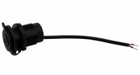 Hochleistungs- USB-Ladedose, Ladeleistung bis 65 W - bei 20 V. Doppel USB-Einbausteckdose (ø 37 mm) mit USB-C und USB-A zum Einschrauben, mit Gummideckel. Der USB-A Anschluss ist reversibel, heisst er passt auch um 180 Grad versetzt. Dezent blau hinterleuchtet für den Wohnraum von Wohnmobilen usw. USB-A QC 3.0 - bis 18 W Leistungsdaten: 5 V 3 A, 9 V 2 A, 12 V 1.5 A USB-C PD 3.0 - bis 65 W Leistungsdaten: 5 V 3 A, 9 V 3 A, 12 V 3 A, 15 V 3 A, 20 V 3.25 A Für Wandstärke bis 27 mm, benötigtes Bohrloch ø 28mm Anschlusskabel 10 cm, offene Enden ** Lädt so ziemlich alle USB Geräte, welche einen erhöhten Ladeleistungsbedarf aufweisen. Einige Geräte können trotz des 65 W Ausganges nicht geladen werden, bitte im Zweifelsfall ausprobieren. ** ø 29 mm, 12/24 V, PD 18 W / QC 65 W