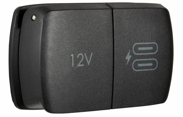 Kombiniert die Eigenschaften unserer Scanstrut Hochleistungssteckdosen Flip Pro Max und 12 V in einer schönen Multi-Power-Lösung. Bei Nichtgebrauch bleiben die federbelasteten Kappen fest verschlossen und schützen die Anschlüsse vor den Elementen. - Universelle Passform für alle USB-C-Anschlüsse - Schnellladung (max. 60 W) für bis zu 2 Geräte gleichzeitig - Wird mit einem Frontblenden-Kit geliefert - Marine-tauglich - IPX4 wasserdicht mit geschlossener Abdeckung - UV-beständig - Scharnier und Feder aus Edelstahl 316 **Power Dose 45 mm tief, kann bei einigen Ladeadaptern zu tief sein. Bitte vor Installation prüfen** ø 30 mm, 12 V 36 W, 24 V 60 W