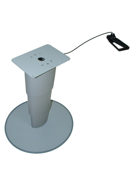 Leichte Bedienung und anspruchsvolles Design ergeben einen komfortablen Nutzen im Alltag. Die optimierte Lifttechnik bietet maximale Stabilität und Langlebigkeit. Für das moderne Design sorgt die elegante ovale Abdeckung. Durch Ziehen des Hebels stufenloses Absenken möglich. Das Hinauffahren wird mit einer Gasdruckfeder unterstützt. Plattenträger mit großer Fußplatte.