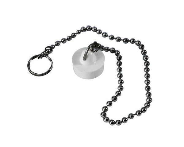 Bouchon avec chaînette à billes adapté à la bonde droite et coudée.