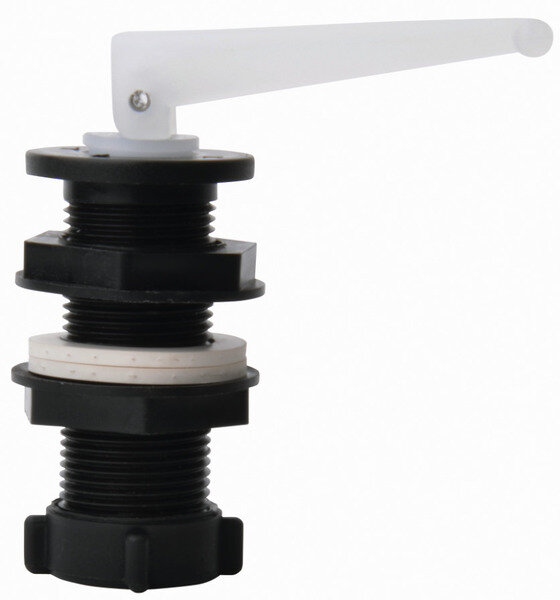 Emptying nozzle for easy and quick emptying of the tank, e.g. in winter. Prevents frost damage. Is inserted through a hole in the tank and fastened with hexagon nuts on both sides.