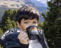 The coffee in the morning tastes from this cup both in the camper, in the tent, at home, on the terrace, at festivals, etc.. The thick-walled enamel cup with handle promises premium drinking pleasure and a long life. With colored emblem imprint on black enamel. Food safe and dishwasher safe (at lowtemperature). Not suitable for microwave.350 ml volumeDimensions: Ø8,5cm, H8cmWeight: approx. 0,1 kg