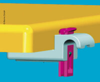 Mit der Tischgleitschiene Quick Clip können Sie per Knopfdruck den Tisch leicht verschieben oder aushängen. Mit der zweiten kürzeren Tischschiene kann die Tischplatte als Unterlage für die Liegefläche dienen.