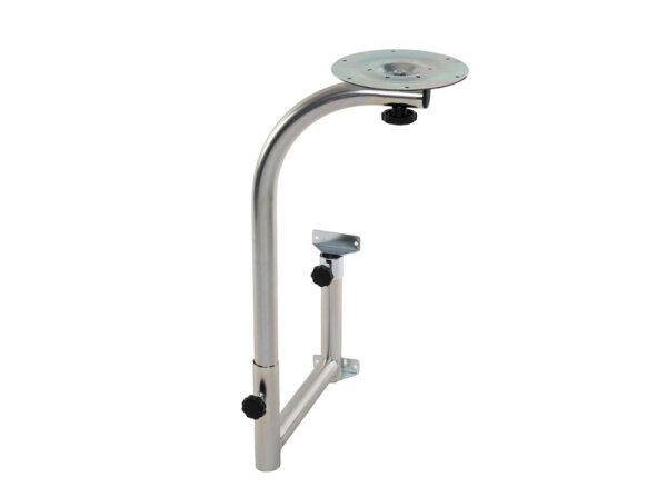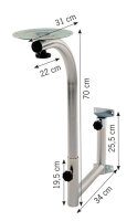 The solution for compact motorhomes. Suitable for fixed mounting and sliding benches. Made of galvanized steel tube, with mounting hardware. Easy to store. Can be shortened in height. Table frame for Reimo Variotech bench system, e.g. Miami, Lucky and many more. Mounting plate approx. 19 cm, swivel radius approx. 30 cm.
