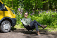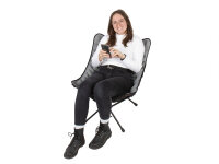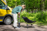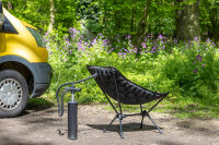 Der Faltstuhl bietet einen hohen Komfort durch die aufblasbaren Luftkammern des Bezuges. Der Bezug wird einfach über das aufgestellte Gestell gezogen. Die miteinander verbundenen Teile des Aluminiumgestells sind einfach zusammensteckbar.