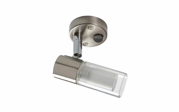 Spot Stahl verchromt, gebürstet mit Glasschirm. Reflektor schwenkbar.