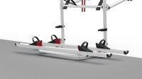 Motorisierte Carry-Bike für Wohnmobile, der Auflagebügel lässt sich um 77 cm absenken und ermöglicht so ein müheloses Be- und Entladen der Fahrräder. Diese Version ist eine Ergänzung zum handbetriebenen Carry-Bike.
