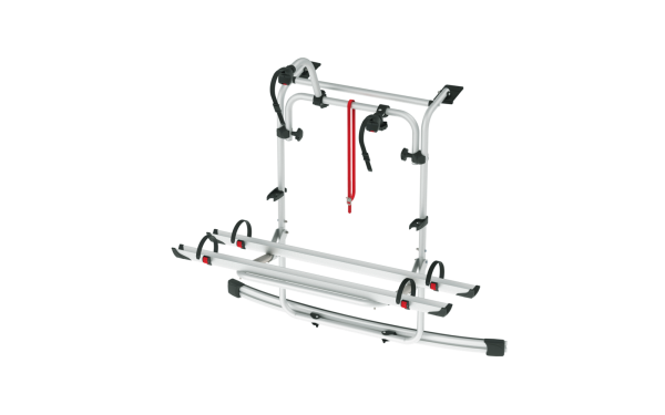 Kann bis zu 4 Fahrräder aufnehmen. Die obere Gelenkstruktur ermöglicht ein genaues Einstellen der Position der Bike-Block zur Befestigung der Fahrräder, das praktische untere Spannsystem ermöglicht eine sichere Befestigung des Carry-Bikes am Fahrzeug. Die speziell geformten Halterungen werden an den Verstärkungspunkten der Heckklappe eingehängt. Der robuste Auflagebügel aus eloxiertem Aluminium garantiert einen optimalen Belastungswiderstand.
