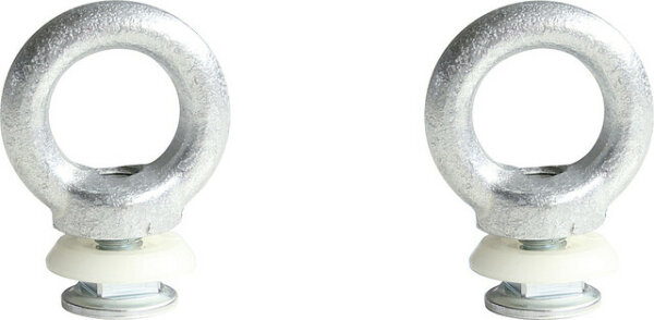 Lieferumfang: Inklusive 2x Ösenmuttern M8, 2x Nutenschrauben M8 / Durchmesser 20 mm mit Vierkant 11 x 11 mm, 2x Kunststoffscheiben