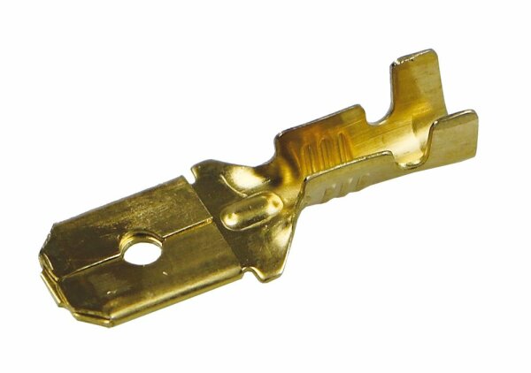 Flachsteckzunge Messing blank ohne Rastnase Querschnitt: 0.5 -1.5mm² Steckbreite: 6.3 mm Steckdicke: 0.8 mm Materialdicke: 0.38 mm Werkstoff: Messing (CuZn) Länge: 19.5 mm 6.3mm / 0.5 -1.5mm² / ohne Rastnase