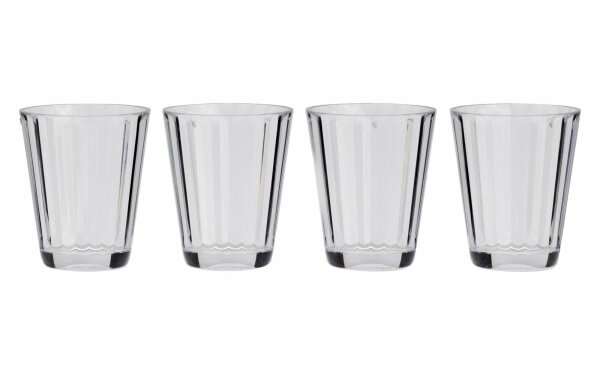 Mit dem 4-teiligen Gläserset Royal im edlen Design. Durch die länglichen Rillen sind die SAN-Gläser optisch dem echten Glas zum verwechseln ähnlich und liegen gut in der Hand - darüber hinaus sind sie bruchsicher und leicht im Gewicht.