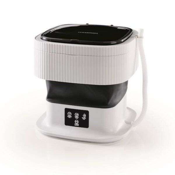 Foldable mini washing machine, Space-saving & easy to store, Perfect for various items of laundry such as T-shirts, underwear, socks & kitchen towels, 2 wash programs ( 5 + 10 minutes ), 1 spin cycle ( 3 min ) & automatic stop at the end of the program, For up to 1 kg of laundry, ,with 9 liter water capacity, Low noise ( approx. 55 decibels ), depending on the wash load & wash program, Easy to operate.