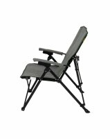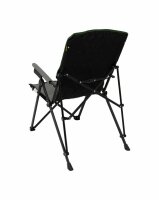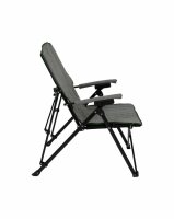 A comfortable folding chair with a trendy industrial look and padded armrests. The backrest can be adjusted in four positions so that you can adopt both an active and a relaxed sitting position. In addition, the upholstery is made of luxurious Cationic and features trendy decorative stitching. The black steel frame makes the chair easy to fold. Can be used outside in the garden or at the campsite, at home on the balcony or in the living room!