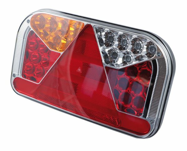 - links - mit Nebelschlussleuchte - mit seitlicher Kennzeichenleuchte - IP68 - kann Aspöck Multipoint II ersetzen, da gleiche Abmessungen - weitere Varianten auf Anfrage erhältlich Pin-Belegung: 1-weiss: Masse 2-schwarz: Positionslicht + Kennzeichenlichg 3-blau: Nebeschlusslicht 4-gelb: Blinklicht 5-rot: Bremslicht 240 x 140 x 55 mm, mit NSL, mit KZL seitlich