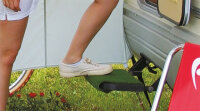 Bequeme Fußmatte für elektrische oder manuelle Stufen von Wohnwagen oder Reisemobilen, leicht zu reinigen. Die Matte ist serienmäßig mit Federn versehen.