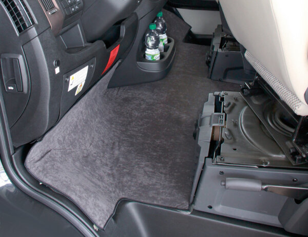 Die Fußraumisolierung schützt wirksam vor eindringender Kälte im Fußraum und bremst den Wärmeverlust. In Kombination mit einem Thermovorhang ist die Thermomatte ein ideales Mittel, den Innenraum angenehm zu temperieren. Die wohnliche Oberfläche ist unempfindlich und lässt sich leicht reinigen. Durch die dreidimensionale Wannenform schließt die Isolierung im Bereich der vorderen Einstiege dicht ab und schützt vor kalter Zugluft.