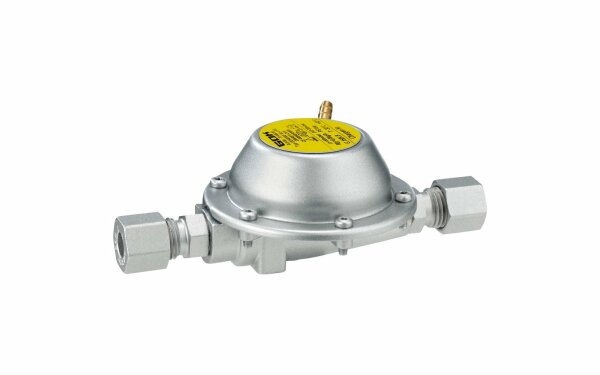 Vordruckregler Typ DE 50/30 PS 1 bar zur sicheren und normgerechten Integration von 30 mbar Gasgeräten in 50 mbar Flüssiggasanlagen in Fahrzeugen und Booten.