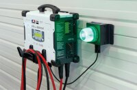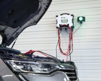 Kabellänge: 5 m Kabelquerschnitt: 25 mm2 Das 100 A starke Inverter-Ladegerät GYSFLASH 103.24 CNT FV stabilisiert nicht nur mühelos 6 V, 12 V, 16 V, 24 V Blei-Säure sowie Lithium-Batterien (Lithium-Ionen «Standard» + Lithium-Eisen-Phosphat) während der Fahrzeug-Diagnose, sondern garantiert auch eine vollständige und schonende Ladung. Der praktische USB-Anschluss bietet zudem die Möglichkeit zur Personalisierung und Erweiterung. 4 BEDIENMODI • Ladung : für Blei-Säure- und Lithium-Batterien mit 6, 12, 16, 24 V von 5 bis 1’200 Ah. • Diagnose : versorgt im Diagnose-Stadium Fahrzeugbatterien mit bis zu 100 A, z.B. in Werkstätten. • «Showroom»-Modus: versorgt die Batterie während der Ausstellung im Vorführraum mit Strom und sorgt für eine optimale Ladung der Batterie. • «Test»-Modus: ermöglicht die Überprüfung der Batteriespannung, des Startersystems (Motorstarter + Batterie) und der Lichtmaschine. 100% STEUERBAR • Ladeprofile durch USB hinzufügen, ändern oder löschen. • Import von vordefinierten Einstellungsdateien, die an die verschiedenen Ladebedürfnisse angepasst sind. • Daten von Ladevorgängen und Ladedaten auf einen USB-Stick herunterladen, um sie in einer Tabellenkalkulation zu analysieren. • Zusätzliche Module (Drucker, Barcodescanner, usw.) anschliessbar über einen speziellen Anschluss (SMC: Smart Module Connector). BESONDERS GEEIGNET FÜR TRAKTIONSBATTERIEN • GYSFLASH 103.24 CNT ist ein Ladegerät mit einstellbarer Spannung von 6 bis 24 V, das sich perfekt für alle Traktionsbatterien (Blei oder Lithium) eignet. • 2 Ladeprofile (von 12 verfügbaren) samt einer von unseren Spezialisten sorgsam abgestimmten Konfiguration, lassen sich auf unserer Internetseite abrufen - genau angepasst auch an Sonderprojekte wie Gabelstapler, Maschinengondeln, Reinigungsfahrzeuge usw. AUTOMATISCHE LADUNG • Verlängert die Lebensdauer und Leistung von Blei-Säure-Batterien (Gel, AGM, flüssig, Calcium, etc.) und Lithium-Batterien (Lithium-Ion «Standard» + Lithium-Eisen-Phosphat). • Spezielle überwachungsfreie Ladekurve in 8 (Blei-Säure) oder 9 Stufen (Lithium). • Wiederbelebung tiefentladener Batterien >2V (automatisches SOS Recovery). TECHNOLOGIEN & ERWEITERTE FUNKTIONEN • FV Flexible Spannung: das Ladegerät funktioniert mit einer Versorgungsspannung zwischen 85 und 265 V. • Kontrolle und Kalibrierung der Kabel. • Tastensperre zur Vermeidung von Fehlbedienungen, ideal für Werkstätten und Messen. BESONDERS SICHER Handhabungsfehlern wird zuverlässig vorgebeugt - und dank seines integrierten Temperatursensors schützt GYSFLASH 103.24 CNT die eingebaute Fahrzeugelektronik auch vor Überhitzung. ERGONOMISCH • Kompaktes, robustes Gehäuse mit Kabelhalterung auf der Vorderseite. • Schock- und vibrationsdämpfende Gummifüsse. • Wandbefestigung mit Magnetführungssystem (Option, MagnetFix 50). 340 x 150 x 250 mm, 5 m Kabel, 25 mm2