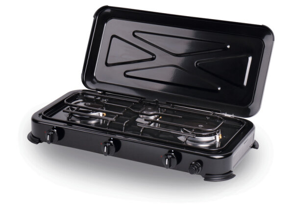 Shapely gas stove of the luxury class from the house Camp4.Product data:Burner size: 2x 10 cm, 1x 5.5 cmHeat supply: 2x 2.2 kW, 1x 0.85 kWAccessories:Matching windscreen: Item no. 70795