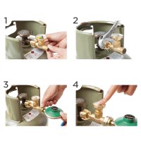 3. Den Regler (keinen mit Überströmventil) an den GasStop anschließen und Schlauch und Gerät normal installieren.