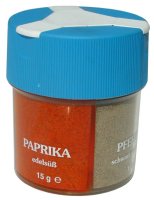 6-fach Streuer: Salz, Paprika, Curry, Knoblauch-Granulat, Pfeffer weiß, Pfeffer schwarz