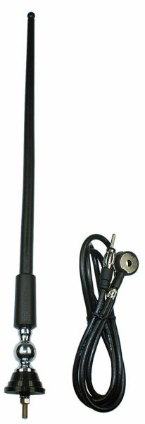 Einbauloch-ø: 13mm Gewinde: M5 Sockel-ø 34mm Antenne bis zu 90° abwinkelbar DAB+ready: kann in Zusammenhang mit einem Splitter auch für DAB+ benutzt werden Mast-Länge: 405mm, Kabel: 1270mm