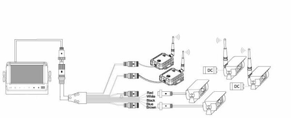 Dieser Funksender kann an eine kabelgebundene Kamera angeschlossen werden damit es an einen wireless Monitor verbunden werden kann. Auflösungsübertragung: 720 + 1080 Pixel Übertragungsdistanz, Barrieren frei bis zu 300m Betriebstemperatur -20 - +70° IP69K9 Nur mit HD Kameras