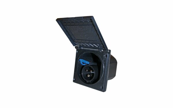 Kleine Ausführung mit Klappdeckel. Deckelrasterung und rückseitigem Abdeckgehäuse, mit Zugentlastung und Seitenwanddichtung dadurch spritzwassergeschützt.