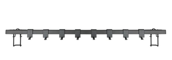 Hakenleiste mit 8 Haken für Ordnung in der Küche. Elegantes Design dank schwarzem Flachstahl. Alternative Befestigung ohne Bohren möglich.