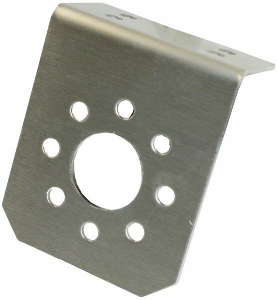rostfrei/ inox 2 mm Wandstärke inklusive 4 Befestigungslöcher oben. Innen ø 33 mm Lochkreis 45 mm Befestigungsloch ø M6 Löcher oben 40 x 17 mm Halter wird ohne abgebildete Steckdose geliefert! rostfrei/inox 2 mm Wandstärke