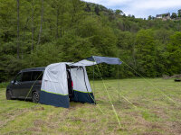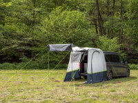 Kein Gestänge, geringes Packmaß und einfacher Aufbau machen das Heckzelt "Update" zur perfekten Wahl aller Kastenwagenfahrer. Einfach über die Heckklappe stülpen und schon ist Platz für ein Feldbett, Fahrrad oder einfach nur um mehr Frischluft im Fahrzeug zu bekommen. Rückwand als Sonnensegel hochstellbar. Fenster und Eingang in der Seitenwand. Für mehr Licht sorgt das PVC-Fenster im Dach.Produktdaten:Farbe: Hellgrau / Grau / LimeMaterial: 100% Ripstop-Polyester 190 T
