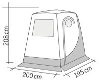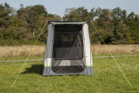 Kein Gestänge, geringes Packmaß, leichtes Gewicht und einfacher Aufbau machen das Upgrade Premium zum perfekten Heckzelt für Kastenwagenfahrer. Die neuen Austattungsmerkmale wie Moskitonetz in allen Ziptüren, Schürze zum Stoßfänger und eingenähte Bodenwanne bieten zusätzlichen Komfort. Die Fronttür kann als Sonnensegel aufgestellt werden und die beiden Seiteneingänge haben getönte Fenster. Der Bestseller mit Schutz vor Moskitos und Insekten hat eine zusätzliche Lüftung über dem Eingang und kann mit Clips seitlich am Fahrzeug befestigt werden. Die eingenähte Bodenwanne kann an der Stoßstange befestigt werden.Weitere Spezifikationen:Nähte versiegeltUV-Schutz beschichtetSchwer entflammbar