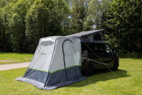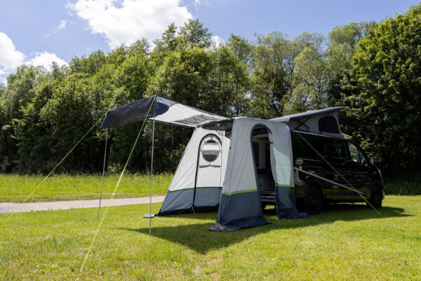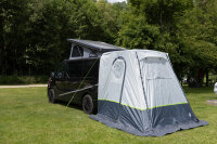 Mit besonders großem Innenraum, für Feldbett, Fahrräder, o.ä. Heckzelt einfach über geöffnete Heckklappe ziehen und am Boden befestigen. Die Rückwand mit Moskitonetz-Fenster kann auch als Sonnensegel genutzt werden. Auch als Umkleidekabine oder Duschzelt verwendbar. Türen in beiden Seitenwänden.Das Heckzelt ist auch verwendbar für folgende Fahrzeuge:Citroen: Spacetourer, Jumpy (ab Baujahr 2016)Fiat: Talento (ab Baujahr 2016) nur mit Heckklappe, alle LängenNissan: NV 300 (ab Baujahr 2016) nur mit Heckklappe, alle LängenPössl: Campster (ab Baujahr 2016)Peugeot: Traveller und Expert (ab Baujahr 2016)Toyota: ProAce Verso (ab Baujahr 2016)Opel: Zafira Life / Vivaro / Vivaro C (ab Baujahr 9/2019), nur mit Heckklappe, alle LängenWeitere Spezifikationen:Farbe: Grau / Anthrazit / LimeMaterial: 100% 190T RipStopPolyesterUV-SchutzSchwer entflammbarHinweis: Wir empfehlen unseren Sichtschutz / Duschvorhang zur Abgrenzung zum Fahrzeug-Inneren (Art.nr. 936287)