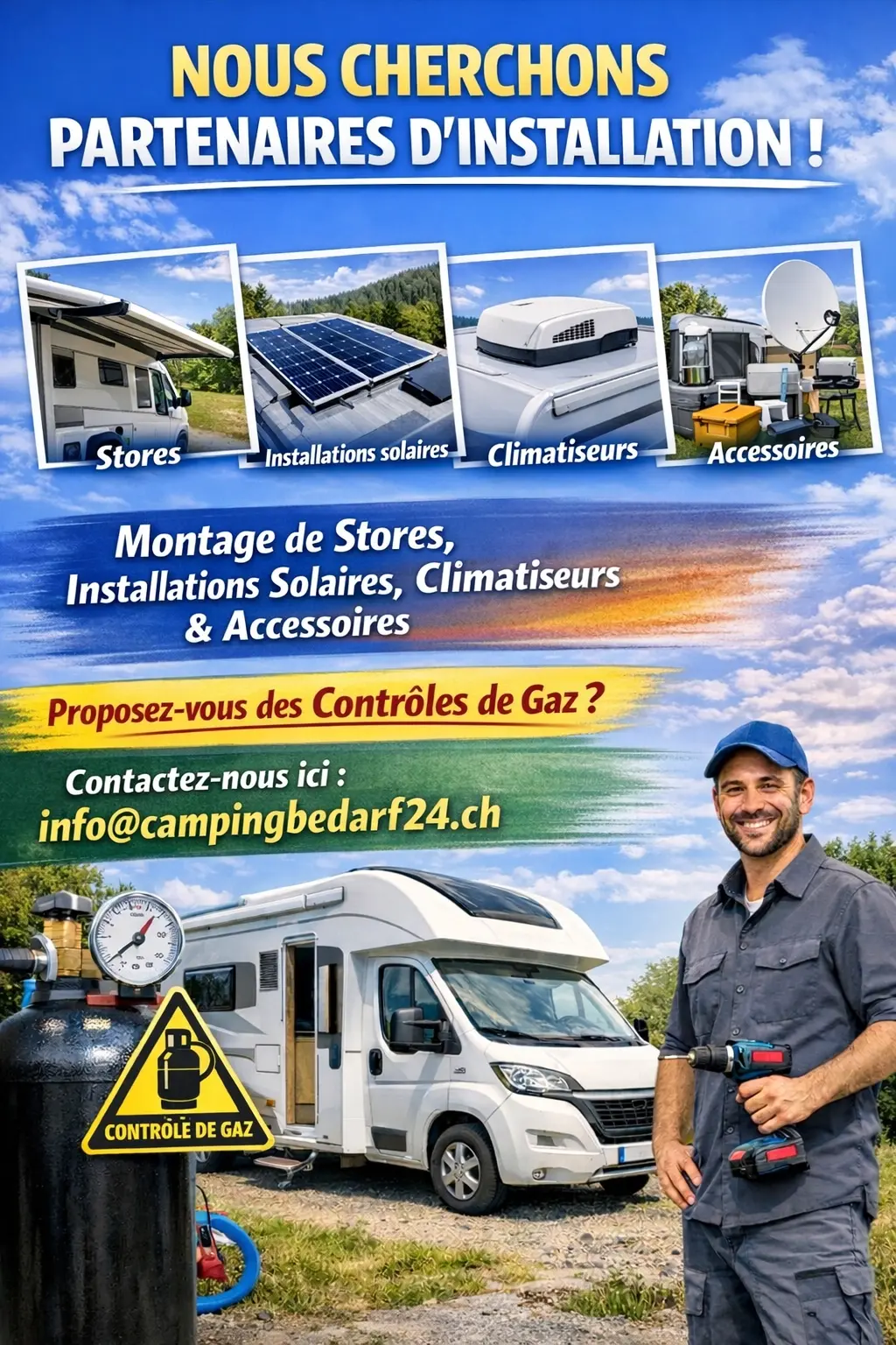 Nous sommes le leader de la vente par correspondance en ligne pour le camping et le caravaning sur le Plateau suisse. Avec plus de 20.000 produits de marques connues sur le thème des accessoires de camping, nous proposons un assortiment complet unique en son genre. Réjouis-toi de faire de nouvelles expériences, de vivre des moments formidables et de garder des impressions durables - nous nous réjouissons de partir "en tournée" avec toi !