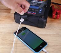 Booster hybride basé sur la technologie de condensateur Ultracap avec batterie au lithium supplémentaire. Démarre les véhicules 12 V avec une batterie déchargée en retirant la tension restante et en la transformant et en la relâchant une fois. La batterie au lithium est principalement utilisée pour l'éclairage, charger les téléphones portables, etc. ou dans les cas rares où la batterie est trop faible pour charger complètemenr le condensateur. Le mode de fonctionnement exact se trouve dans le mode d'emploi. Le pack comprend le booster, un câble de recharge pour allume-cigare et un port USB pour charger les appareils mobiles. 400 A (Peak 800 A)