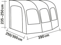 Material: 300D Oxford Ripstop PolyesterUV protectionLow flammabilitySeams sealedPiping length 438cm