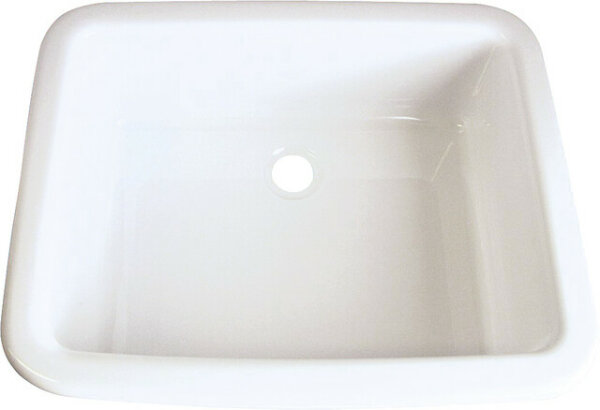 Inset sink for installation in a worktop, made of high-impact, glossy matt and formaldehyde-free polystyrene, which is laminated with a protective film to prevent scratches before installation. The compact rectangular design offers maximum volume and space and is ideally suited for today's conversions and extensions due to its small dimensions for panel van structures. Drain set optionally available.