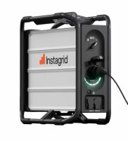 Instagrid ONE max - Energie für die leistungsintensivsten Geräte - Spitzenleistung von 18’000 W mit T23 Schweizer Steckdose! Die robuste und ultimative Powerstation für den ambitionierten Handwerker. Der Auftritt dieses Kraftwerks mit dem gebogenen Schutz- und Tragerahmen sagt bereits alles über den Einsatzzweck – Heavy Duty! Für Profis mit komplexem Energiebedarf hat Instagrid eines der modernsten, tragbaren Batteriesysteme der Welt entwickelt. Die preisgekrönte Spannungsumformertechnologie basiert auf einer innovativen Anordnung gestapelter Mikro-Wechselrichter, die eine bisher unerreichte Leistung bietet – dies bei einem federleichten Gewicht von nur 20 kg. Energie für die leistungsintensivsten Geräte - Spitzenleistung von 18’000 W. Echte Freiheit - Hier kommt eine 230-Volt-Anschlussdose zum Mitnehmen – für jedes Gerät, egal wo. Den Überblick behalten - mit IOT Schnittstelle jedes Gerät jeder Zeit unter Kontrolle. Schnell geladen - Vollständig aufgeladen in 2.5 Stunden. Instagrid ONE kann problemlos während der Arbeitszeit aufgeladen werden. Robust und wetterfest - Schutzart IP54+. Ungestört arbeiten, ohne Einschränkungen durch Staub oder Feuchtigkeit. Leistungsdaten: · Ausgangsspannung 230 V (AC) / 50 Hz · Nennausgangsstrom 3.600 W (16 A) · Nennkapazität 2.1 kWh · Ladezeit < 3 h bis 100% · Maximale Betriebsdauer (Leerlauf) 150 h · Lagerung > 3 Jahre (Schalter „Off“ oder „Transport“ Position) · Ausgangssteckdose 1 CH T23 Dose (16 A) · Ausgangssteckdose 2 Neutrik powerCON TRUE1 TOP · Ladeeingang Neutrik powerCON TRUE1 TOP Spitzenleistung: · 150% Überlast (> 500 s): 5’400 W (24 A) · 200% Überlast (> 50 s): 7’200 W (32 A) · 250% Überlast (> 10 s): 9’000 W (40 A) · Spitzenleistung: 18’000 W (80 A) Abmessungen und Gewichte: · Abmessungen: 420 x 210 x 420 mm · Gewicht: 20 kg · Gehäuse: Recycled aluminium · Schutzart: IP54 · Geräuschemission :< 10 dB(A) Lieferumfang: · Instagrid One max · Ladekabel · Benutzerhandbuch Wie kann etwas so Kleines so stark sein? Es gibt viele mobile Batteriesysteme auf dem Markt, und alle folgen mehr oder weniger dem gleichen Prinzip: Eine Batteriebank wird an einen zentralen Wechselrichter angeschlossen. Unser System funktioniert völlig anders. Wir unterteilen den einzelnen zentralen Wechselrichter in mehrere Mikro-Wechselrichter, diese Mikro-Wechselrichter sind jeweils mit einem eigenen Batteriemodul ausgestattet. Software und elektronische Komponenten ermöglichen es, dass die Module Wechselstrom mit einer reinen Sinuswelle erzeugen. Powerbox für harte Einsätze mit bis zu 18’000 W Peakleistung, 2.1 kWh Kapazität und T23 Schweizer-Steckdose