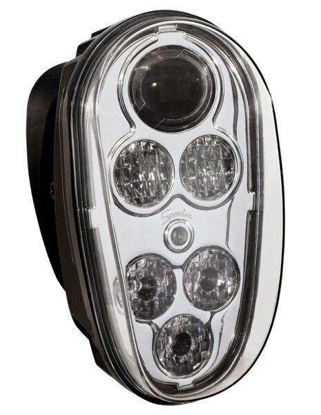 LED-Abblendscheinwerfer mit Positionslicht und Blinker von JW Speaker (Made in USA). Alle Funktionen E-geprüft; 4x8“ 108 x 195mm - Aufbauversion, chrom - 12 - 48 V - IP67 - Gehäuse Aluminium; Linse Polycarbonat - Farbtemperatur: 5’000 K - Temperaturbereich: -40°C...65°C Anschlüsse: rot: Abblendlicht weiss: Positionslicht gelb: Blinker schwarz: Masse Made in USA 108 x 195 mm, chrom, 12 - 48 V, E-geprüft, IP67