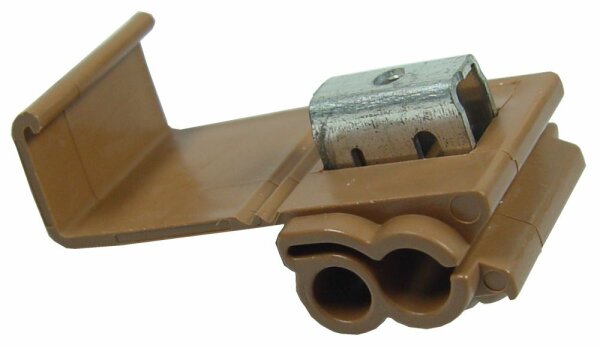 - Braunes Polypropylen-isoliertes - Verbindungselement - Einzigartiger „U“-Kontakt sorgt für eine - zuverlässige elektrische Verbindung - Schnell und einfach zu verwenden – einfach - zuschnappen ohne Abisolieren oder - Verdrehen des Kabels - UL-gelistet, CSA-zertifiziert und RoHS - 2011/65/EU-konform - Das Verbindungselement hat einen - maximalen Isolierungs-Aussendurchmesser - von 3 mm² (Tap), 4 mm² (Run). - Betriebstemperatur von 105 °C 1.5 mm2 / 4.0 mm2