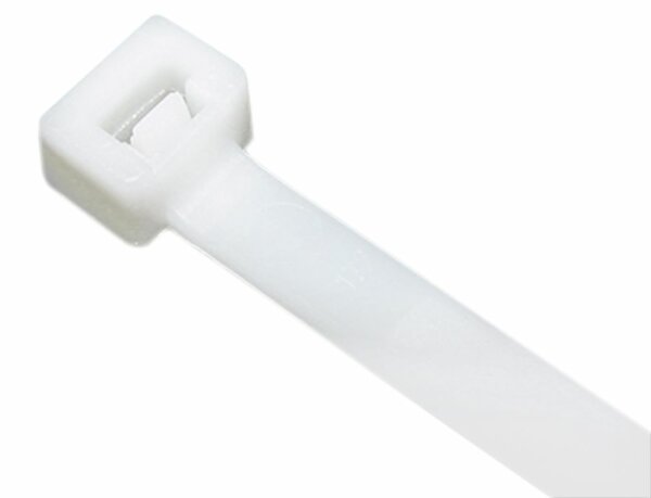 Kabelbänder mit Kunststoff-Zunge aus Polyamid 6.6 (Nylon) ohne Halogene. Schwer entflammbar und selbstlöschend nach UL94 Klasse V2. Temperaturbereich: -40°C ÷ 85°C Höchstverkabelungsdurchmesser: 5 ÷ 101mm Chem. Beständigkeit: Bei niedrigen Temperaturen, geringer Konzentration und kurzer Dauer beständig gegen Lösungen und Reaktionsmittel, Öle, Fette, Benzin, Kohlenwasserstoffe, Seifen, Waschmittel, Alkohol. NICHT beständig gegen Mineralsäuren, Oxidationsmittel. Nicht an Körperteilen spannen! mit Kunststoff-Zunge, für ø 5 ÷ 101mm