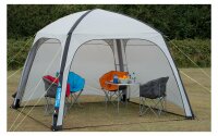 Lieferumfang: Pavillion, Luftgestänge, Seitenwände, Heringe, Handpumpe, Abspannleinen und Tragetasche (100 % Polyester)
