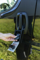 KeyGarage 797 LED mit beleuchteten Zahlenwalzen und Bügel zur Aufbewahrung von z.B. Schlüsseln und Plastikkarten. Mit individuell einstellbarem Zahlencode.