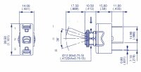 Schalterform: Kippschalter Funktion mechanisch: tastend Funktion elektrisch: Umschalter Spannung: 12 bis 24 Volt Belastbarkeit: 15 Ampère Einbauloch: rund Länge: 29.5 mm Breite / Tiefe: 14 mm Höhe: 43 mm Durchmesser: 12 mm Beleuchtung: Nein Wasserdicht: Nein Zusatzinformation: versilberte Kontakte / Paneldicke -4,5mm/ mit Gummikappe U851 (schwarz) / U1565/6 (rot) / U1565/3 (grün) wasser-/staubgeschützt 1 <- 2 12V-15A 24V-10A ø 12mm / 6,3mm