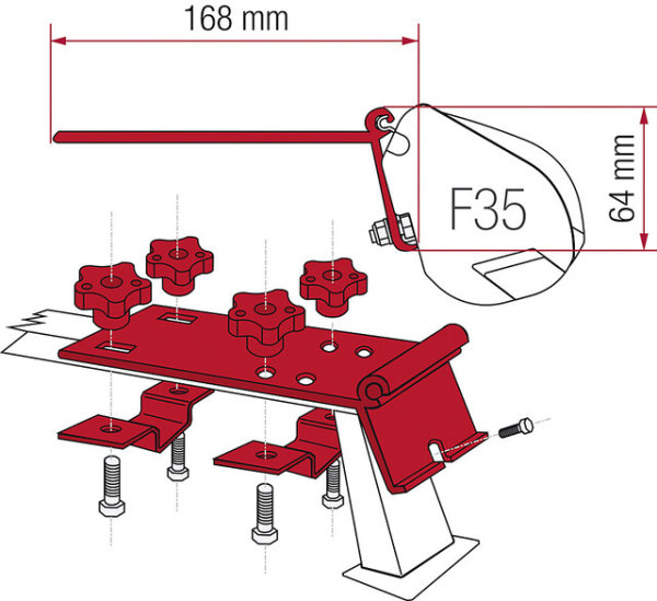 Passend zu Markise F435 zur Montage an vorhandene Dachreling.